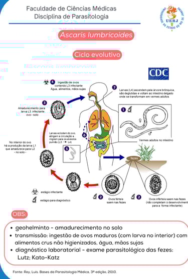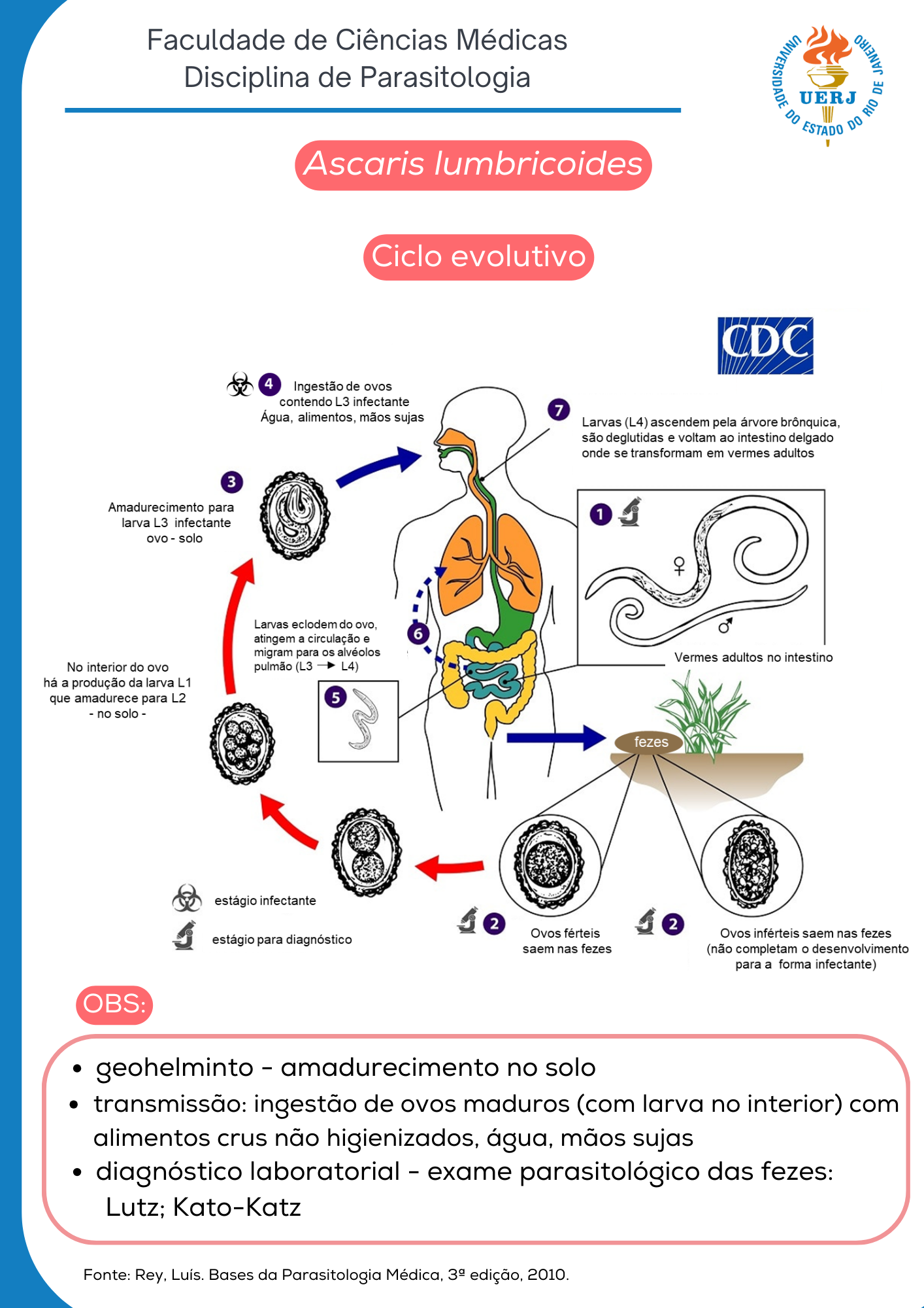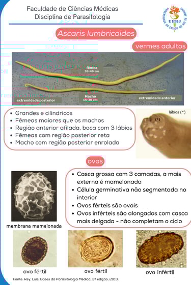 Ascaris lumbricoides - vermes adultos e ovos e ciclo evolutivo do Ascaris lumbricoides