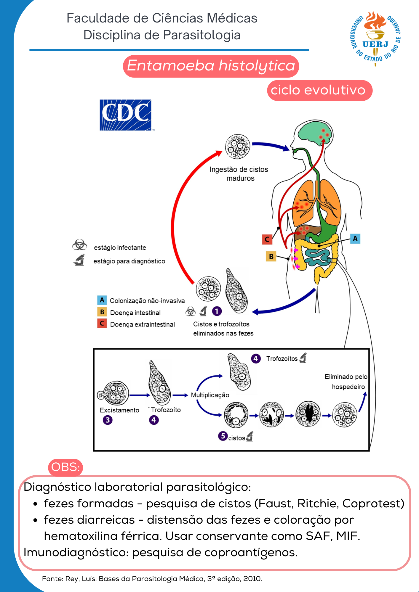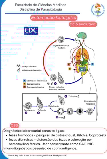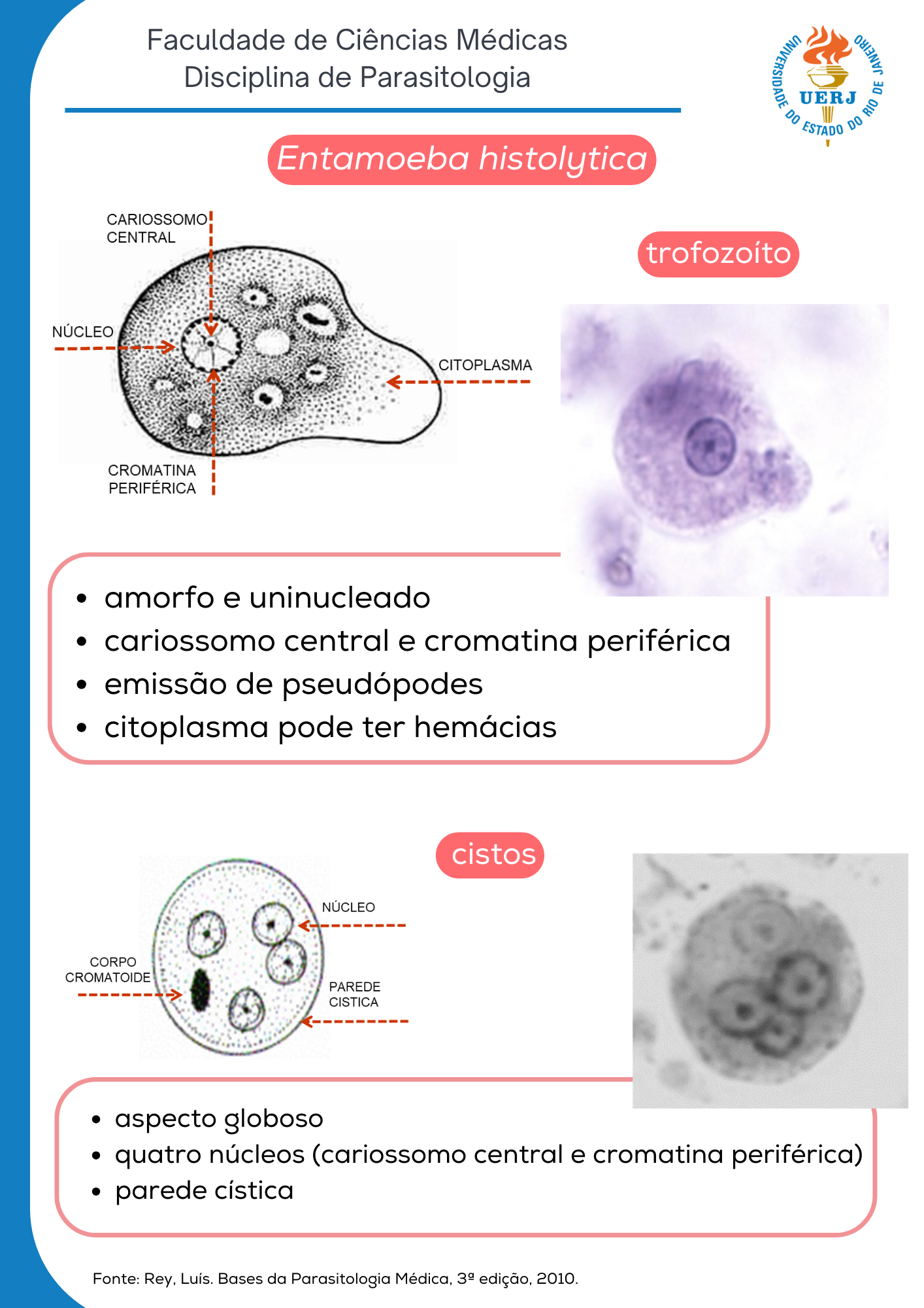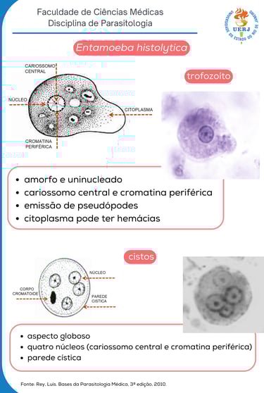 Entamoeba histolytica - trofozoíto e cistos e ciclo evolutivo da Entamoeba histolytica