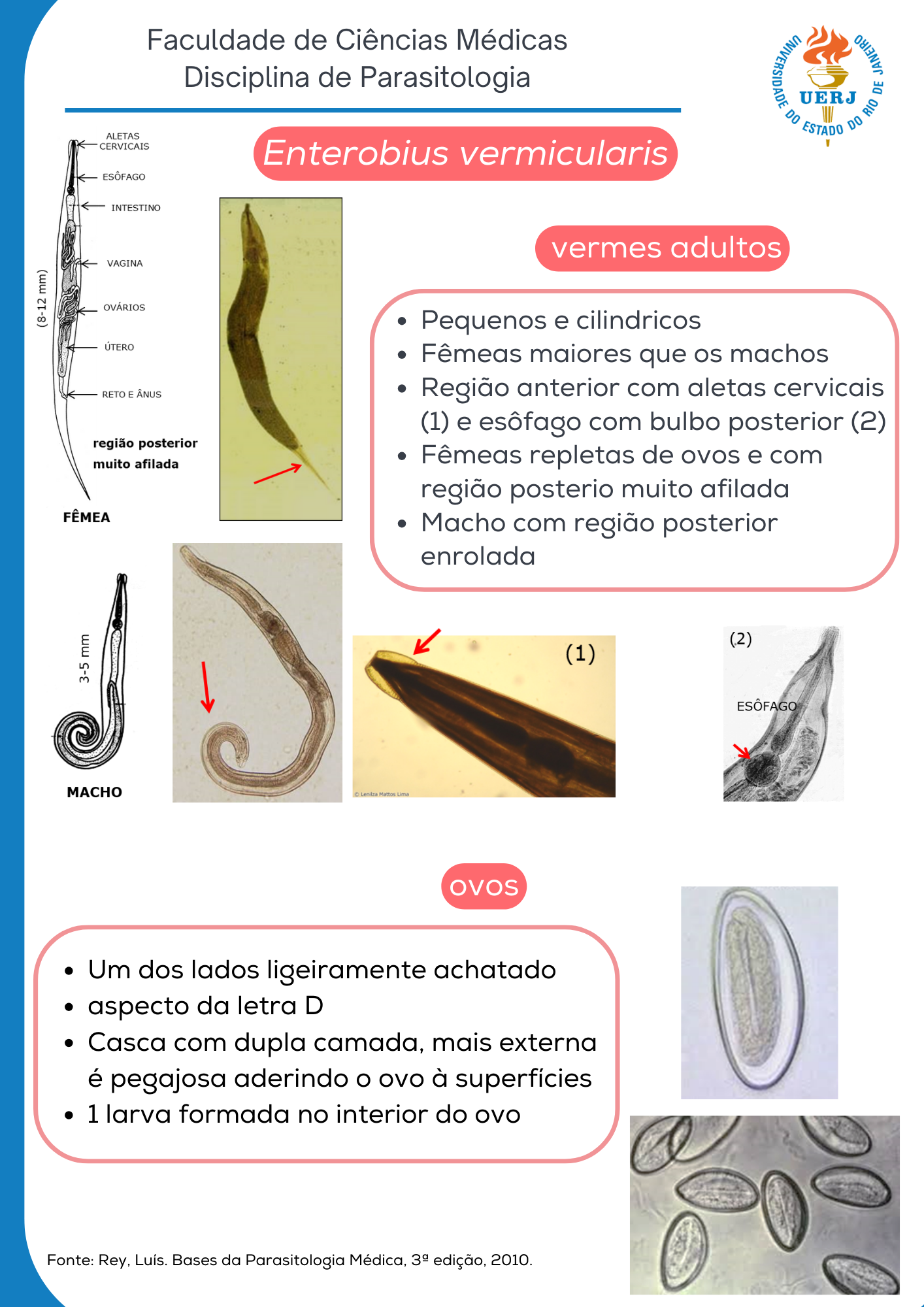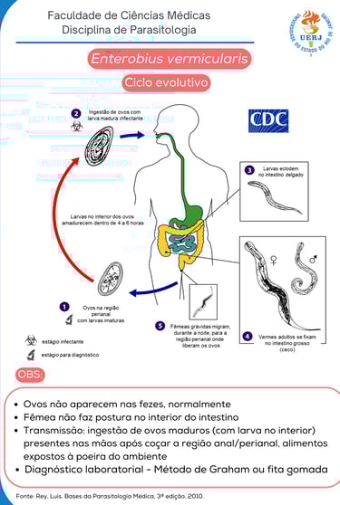 Enterobius vermicularis - vermes adultos e ovos e ciclo evolutivo do Enterobius vermicularis