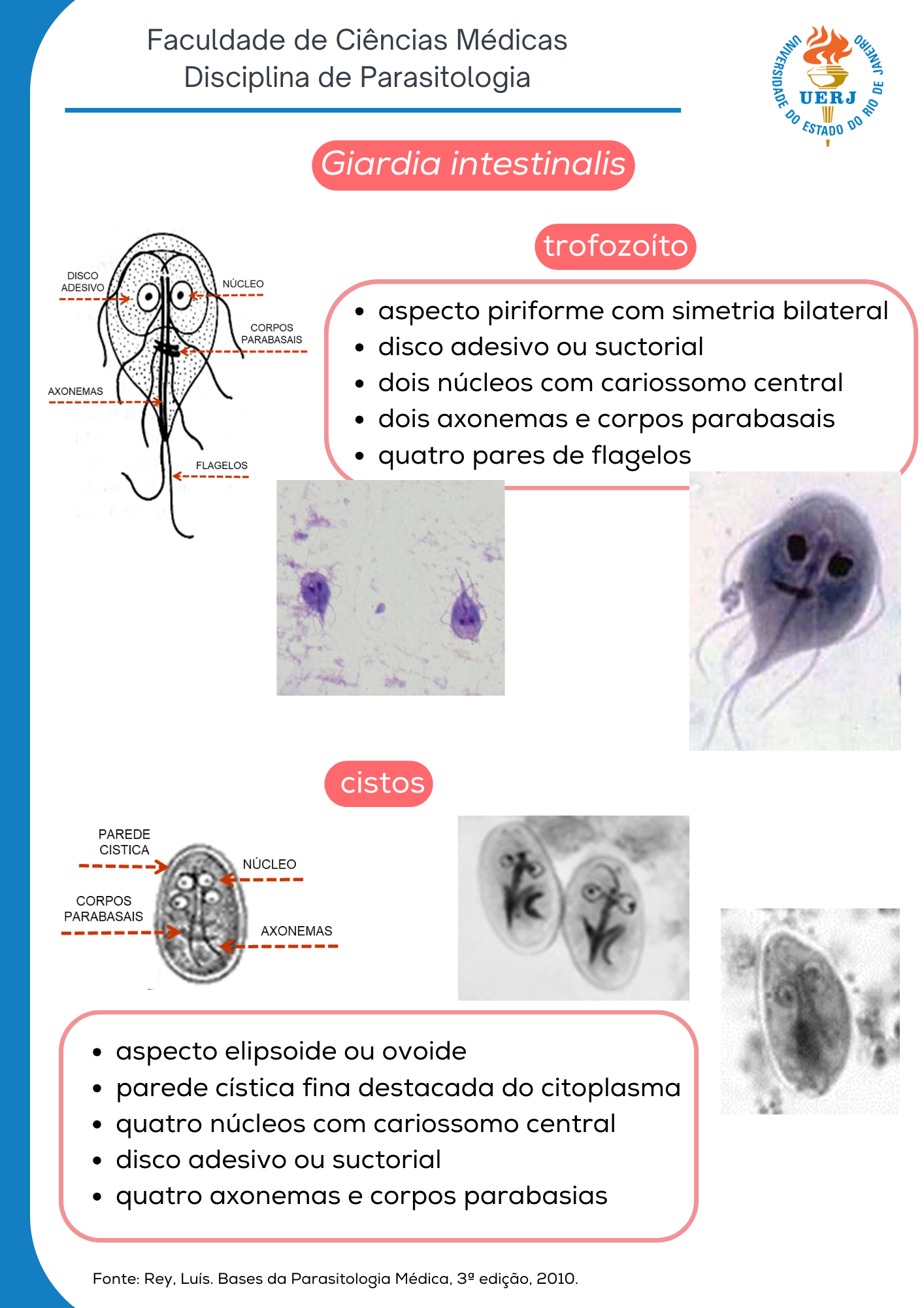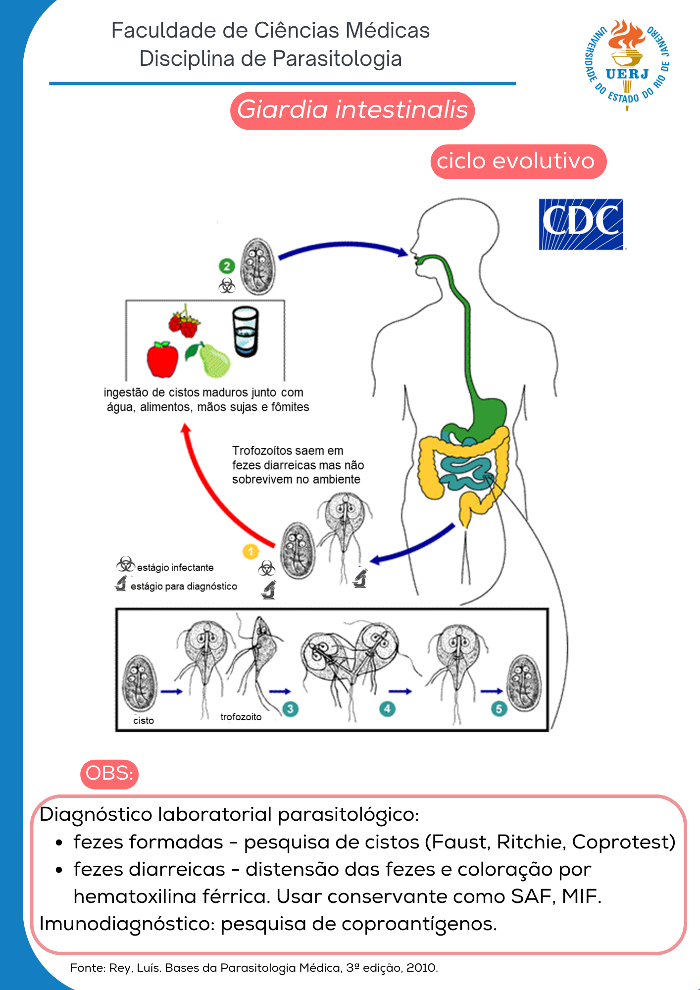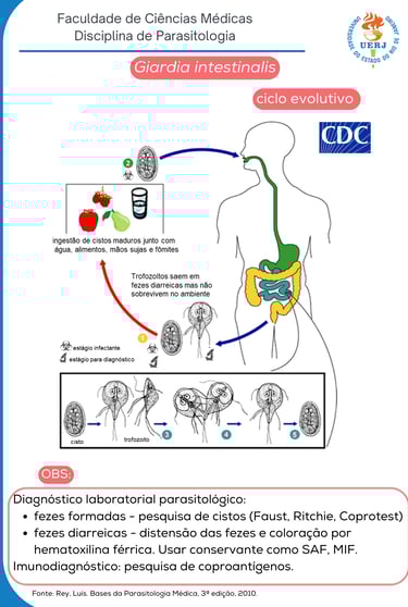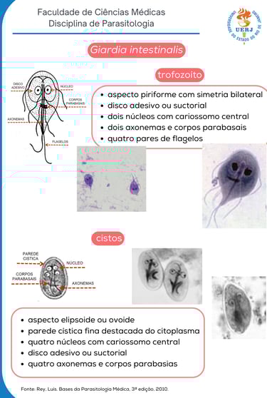Giardia intestinalis - trofozoíto e cistos e ciclo evolutivo da Giardia intestinalis