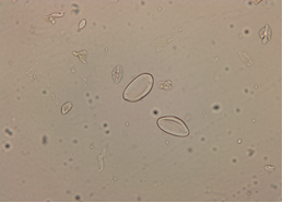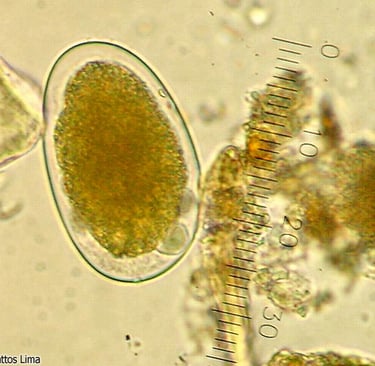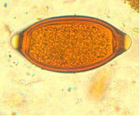 Ovos: Apresentam formato de barril alongado medindo cerca de 50μm de comprimento, com polos refringentes (opérculos) nas extremidades. Ovo de casca espessa, com três camadas.