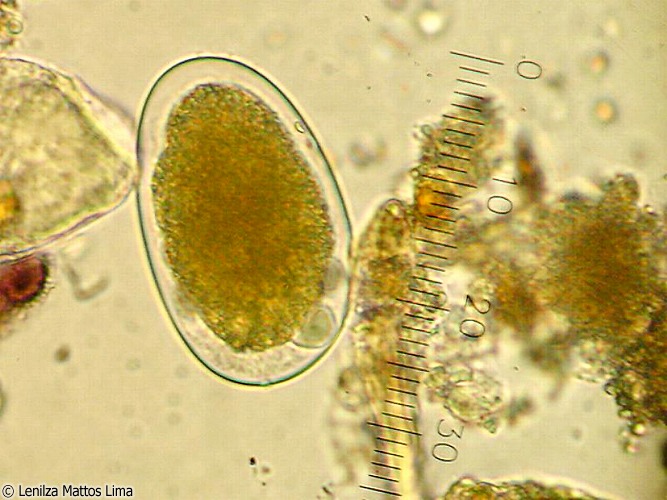 Ovos: Ovos férteis são ovais e medem cerca de 60μm apresentando uma casca grossa contendo três camadas, sendo a camada mais externa apresentando superfície irregular e mamilonada.