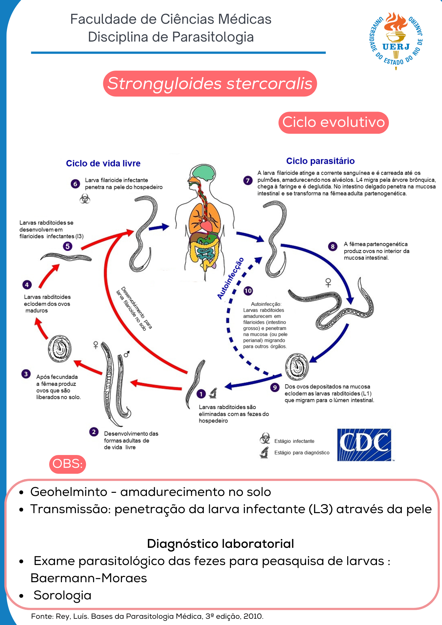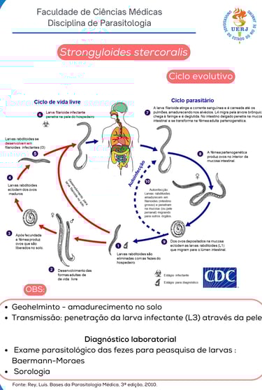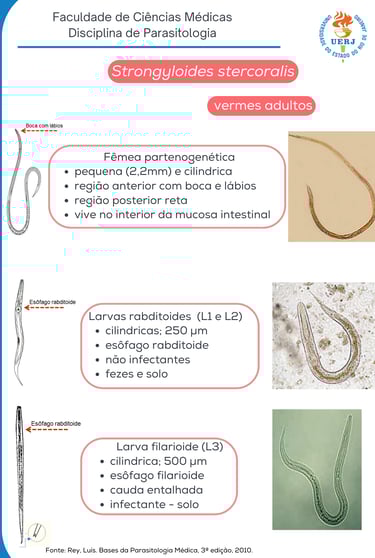 Strongyloides stercoralis - vermes adultos e larvas e ciclo evolutivo do Strongyloides stercoralis