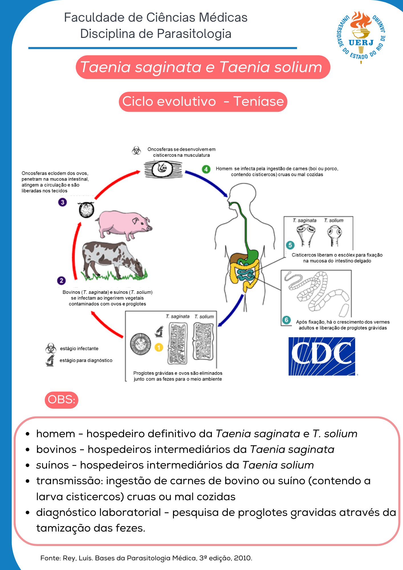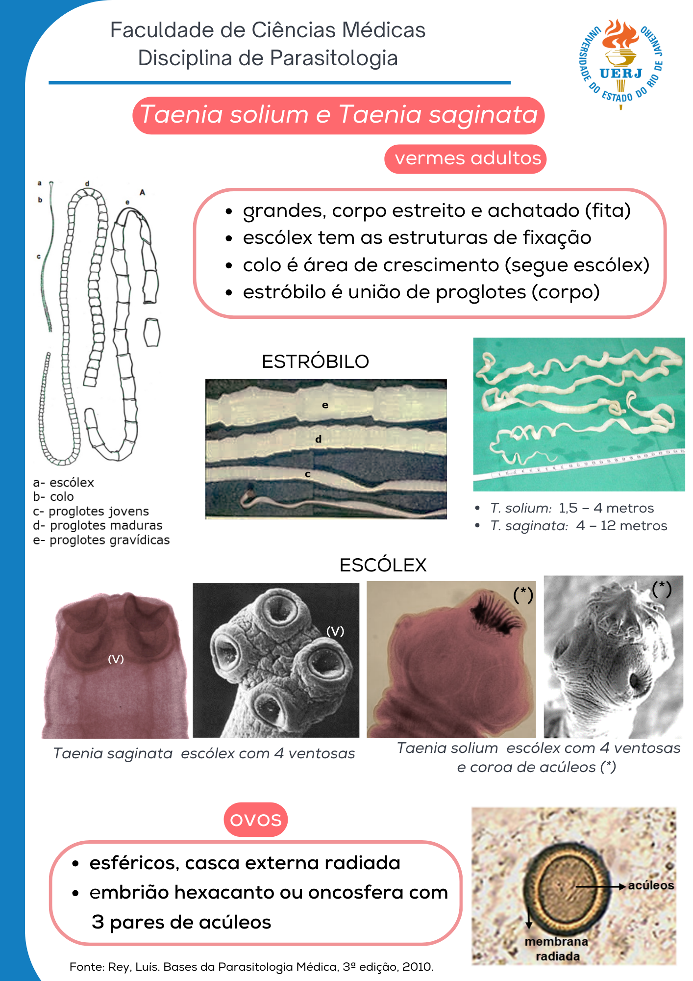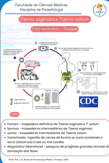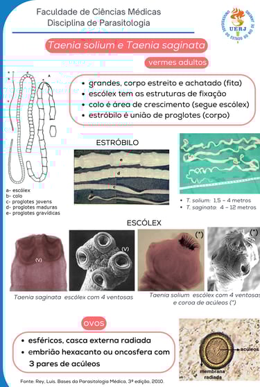 Taenia solium e Taenia saginata - vermes adultos e ciclo evolutivo da Taenia saginata e Taenia solium