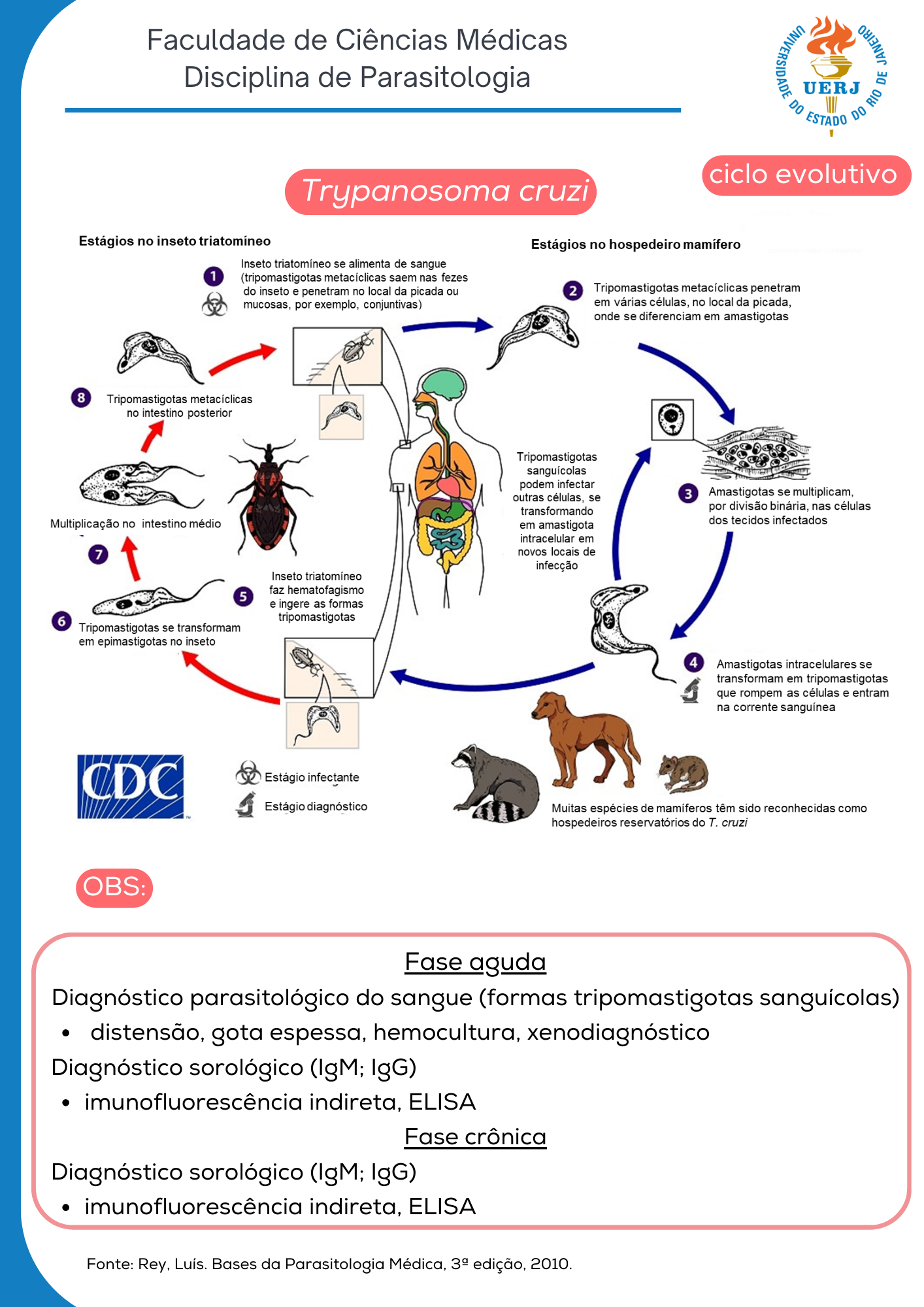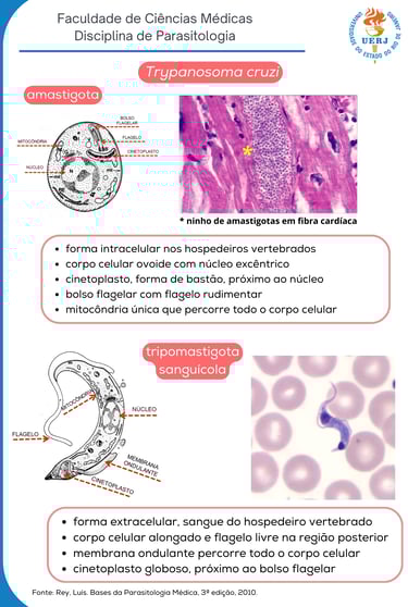 Trypanosoma cruzi - amastigota e tripomastigota e ciclo evolutivo do Trypanosoma cruzi